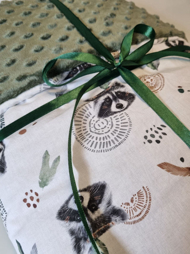 Couverture raton et minky kaki